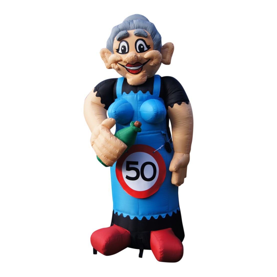Opblaasbare Sarah van 3,20 meter hoog. De ideale blikvanger voor een 50e verjaardag van een vrouw. Huur al vanaf €47,80 per dag incl. btw.