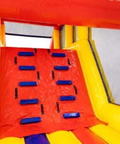 De stormbaan is gemaakt van hoogwaardig PVC-materiaal en is daardoor makkelijk schoon te houden en geschikt voor veel gebruikers. Gecertificeerd volgens NEN-EN 14960. Je krijgt de stormbaan compleet geleverd inclusief blower, grondzeil en verankeringsmateriaal.